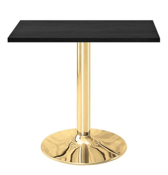 TORI  70x70 - Kwadratowy stół z blatem w kolorze czarnego drewna na złotej nodze  - minimalistyczny, a zarazem efektowny mebel do salonu lub jadalni.