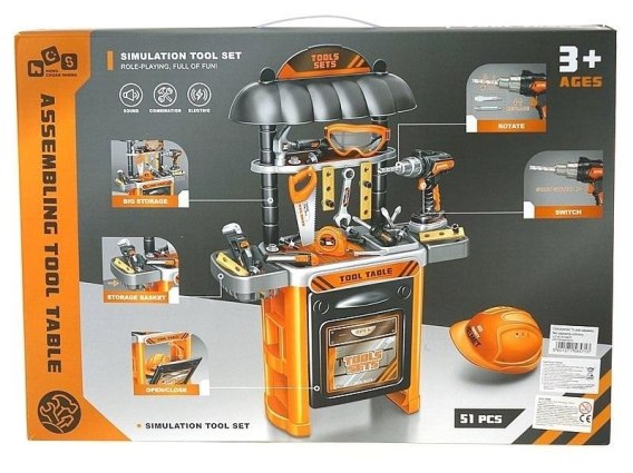 stół z narzędziami, 51 części, światło, dźwięk; 69x35x11cm, Box