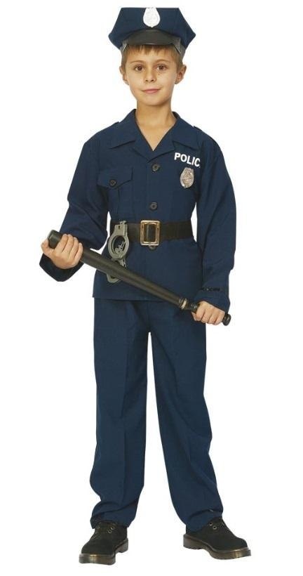Strój Policjant: koszula, pasek, spodnie, czapka, rozmiar: M/120-130 cm