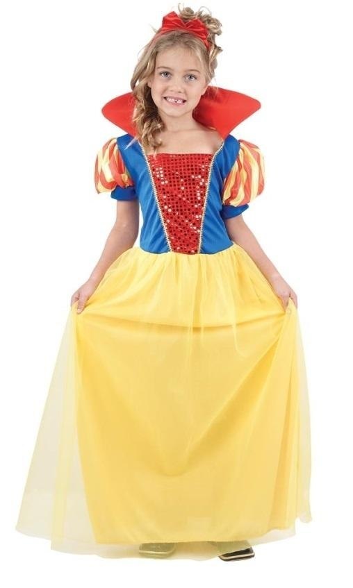 Królewna Śnieżka sukienka z dołączonym kołnierzykiem, opaską z kokardą, rozmiar: S/110-120 cm