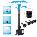 W zestawie znajduję się zestaw dysz wylotowych o różnych konfiguracjach ustawień wylotu wody. Komplet umożliwia szybkie stworzenie pięknej fontanny w każdym zbiorniku wodnym.