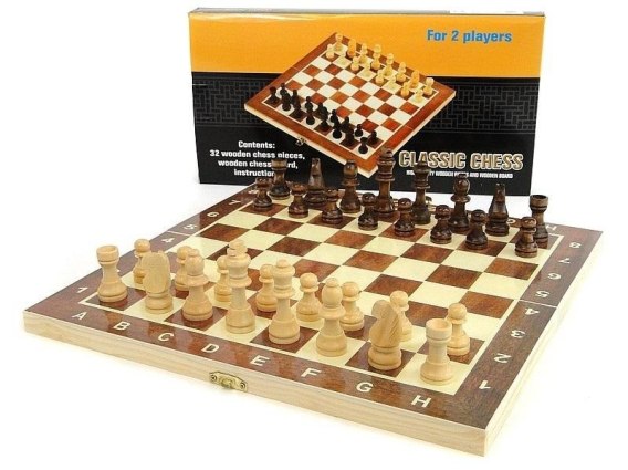 Szachy, plansza ze sklejki, plastikowe pionki; 30x16x3cm, Box