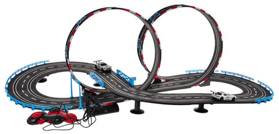 Poszczególne elementy konstrukcyjne pozwolą zbudować tor z ostrymi zakrętami, spiralami i odcinkami prostymi, a wszystko po to, aby maksymalnie uatrakcyjnić zabawę i dodać całej zabawie emocji. W zestawie znajdują się dwa pojazdy. Zestaw idealny dla dzieci powyżej 6-go roku życia. Zabawka zasilana jest bateriami typu 6 x AA 1,5 V (baterii brak w zestawie). Funkcje zestawu - odpowiedni dla dzieci powyżej 6-go roku życia, - wykonany ze świetlnej jakości materiałów, - tor zawiera odcinki proste, pętle 360 stopni, zakręty, spirale, - skala odwzorowania 1:43, - tor może być podpięty do zasilania lub na baterie, - 2 prędkości. |