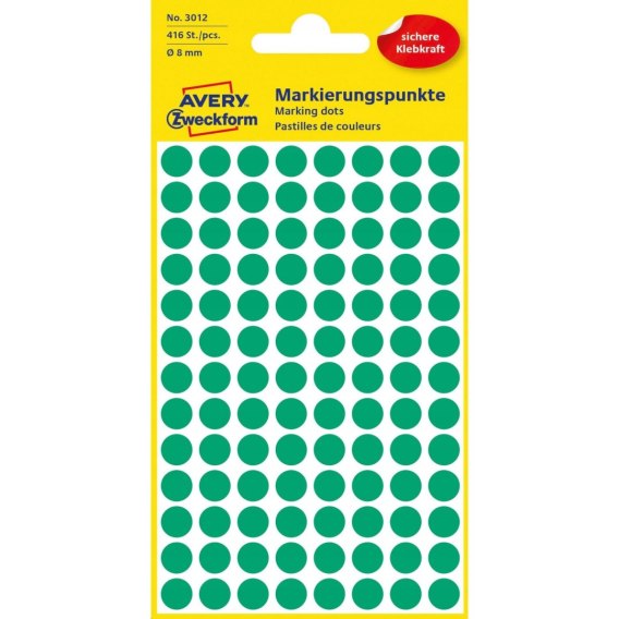 Trwałe kółka do zaznaczania 8mm 416szt./op. zielone 3012 AVERY ZWECKFORM