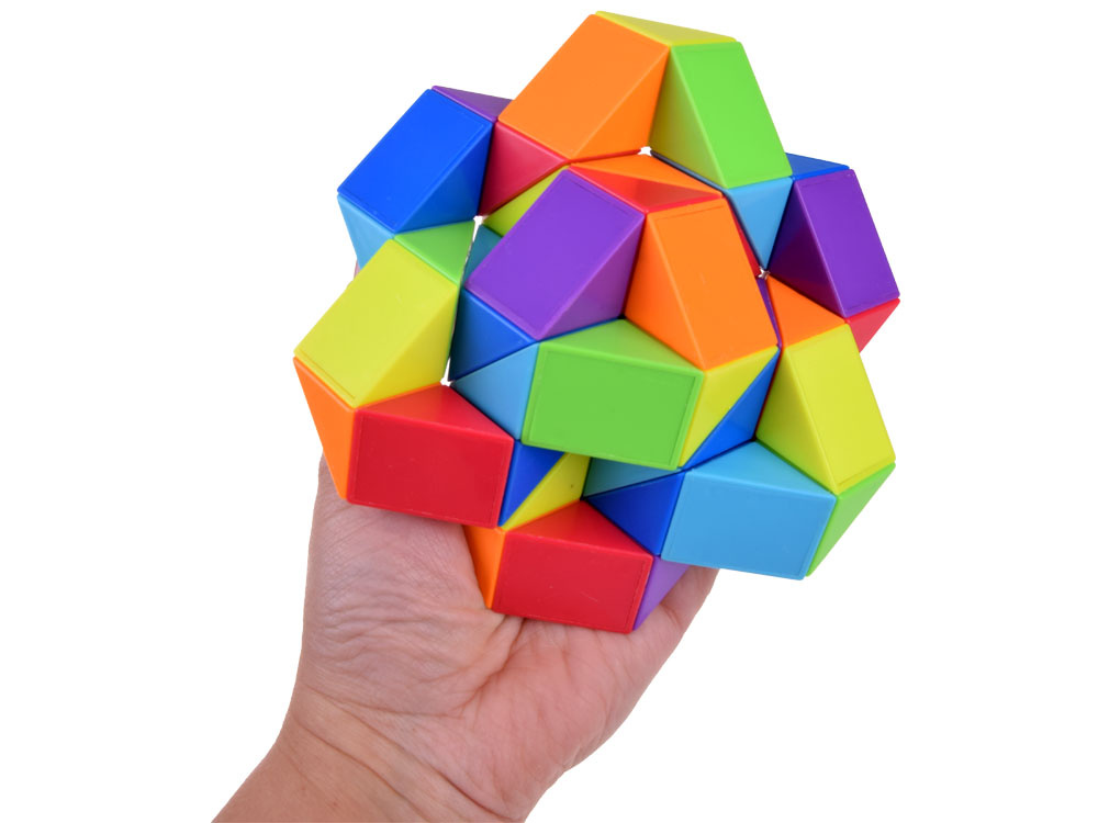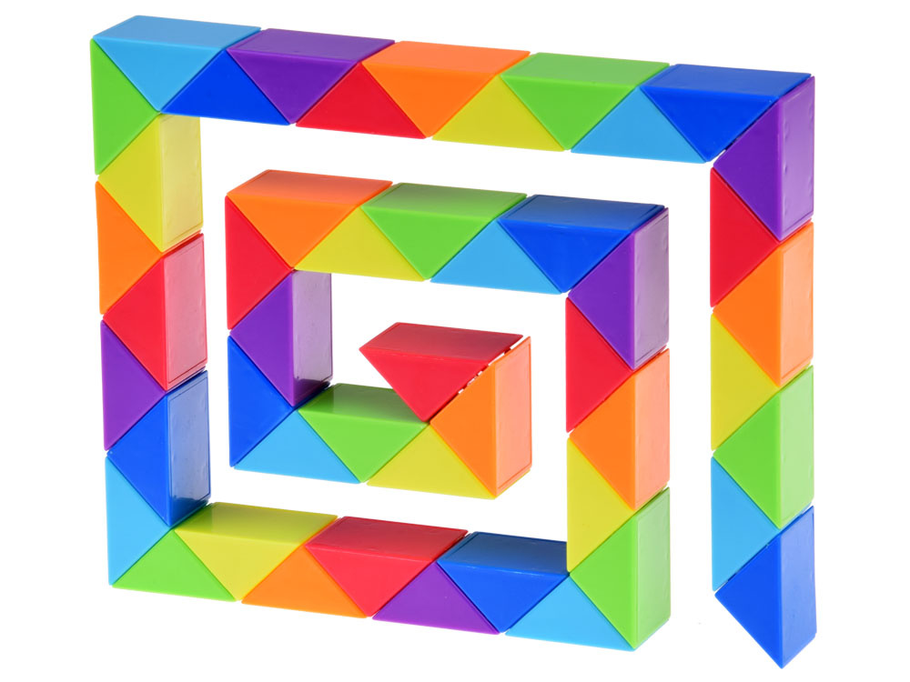 Zabawka rozwija kreatywność, zdolności manualne, uczy cierpliwości i ćwiczy koncentracje. Zabawka wykonana z plastikowych, kolorowych trójkątów. Podczas zabawy wężem można ułożyć wszystko co powstanie w Twojej wyobraźni. Można ją zabrać ze sobą wszędzie, umili każdą wolną chwilę całość kostki rozwija wyobraźnię.