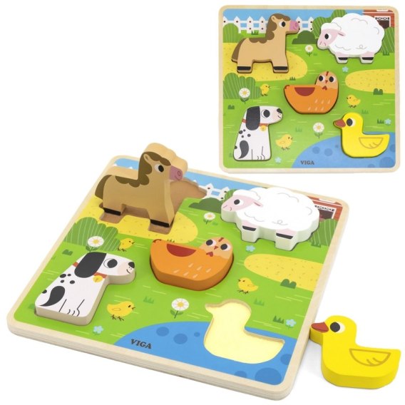 VIGA Drewniana Układanka Puzzle Zwierzątka Farma do Dopasowania