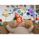 Pałąk Łuk z Zabawkami od marki WOOPIE to uniwersalna zabawka, która doda uroku i rozrywki każdemu wózkowi, fotelikowi czy łóżeczku. Jest niezwykle elastyczny, dzięki czemu bez problemu można go zamocować praktycznie wszędzie. Na pałąku znajdują się różne zabawki: wiatraczek z biedronką, które obraca się i drga po wprawieniu w ruch, słoneczko, które piszczy przy ściskaniu, grzechotka motylek z przeźroczystą kulą, w której skaczą kolorowe kuleczki oraz szeleszczący materiał, zawieszka ślimak i kwiatek, który może służyć jako gryzaczek. Każda z tych zabawek ma inną fakturę, co stymuluje zmysł dotyku dziecka i pomaga w rozwijaniu jego zdolności motorycznych.