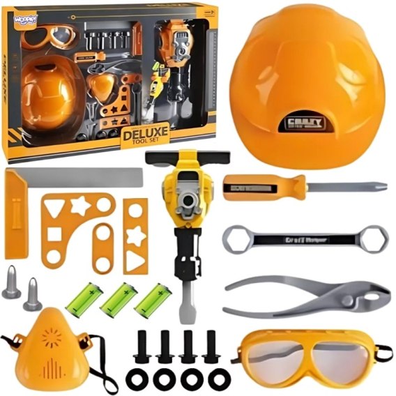WOOPIE Zestaw Narzędzi Małego Majsterkowicza Gogle Kask Młot Pneumatyczny 21el.