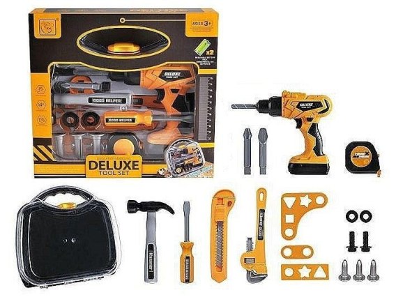 zestaw narzędzi w walizce, 19 elem, wiertarka na baterie; 30,5x28x8cm, W/B