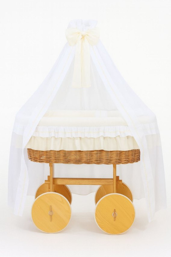 Wiklinowy kosz Mojżesza z baldachimem Deluxe Bellamy - naturalny + kremowa pościel