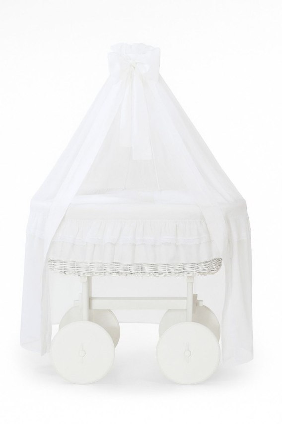 Wiklinowy kosz Mojżesza z baldachimem Deluxe Little Angel - biały + biała pościel