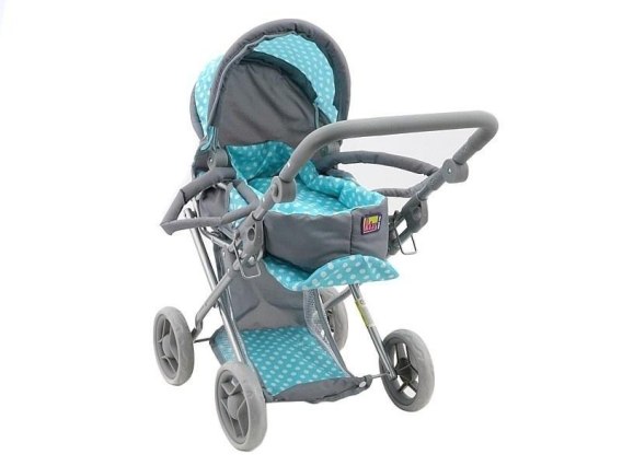 Wózek głęboki dla lalek, profilowana rączka, wyjmowane nosidełko, z koszem, funkcja spacerówki, wymiary: 66x58x36cm, BOX