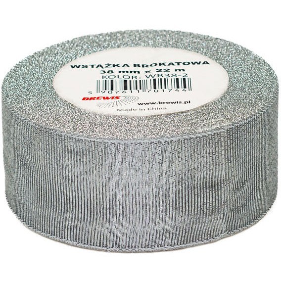 Wstążka brokatowa 38mm srebrna WB38-2 BREWIS