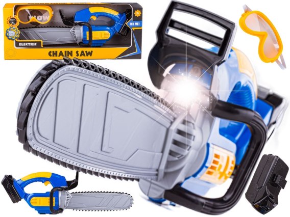 Super zestawPiła posiada drgający łańcuch (nie obraca się dookoła) oraz diodę, która świeci przy włączonej zabawce. |
