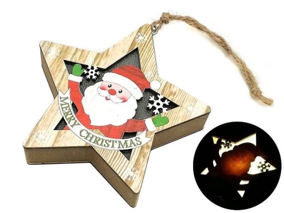 Zawieszka świąteczna drewniana ze światłem LED 10x10cm.