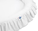 Baldachim wykonany jest z tkaniny 100% bawełnianej, posiadającej atest Okotex. Po bokach znajdują się praktyczne tasiemki, które umożliwiają dowolne upięcie baldachimu. Dzięki wyjmowanej obręczy, łatwo utrzymać go w czystości - można prać w pralce w 30 stopniach. W połączeniu z funkcjonalnym i praktycznym, stworzy idealne, zaciszne miejsce do zabawy i odpoczynku. Szerokie, okrągłe i mięciutkie ścianki zapewnią bezpieczną i udaną zabawę dla każdego malucha. Boki gniazdka wypełnione są atestowanym włóknem Eco Fillball – mięciutkim włóknem uformowanym w malutkie kuleczki. Dzięki specjalnej technologii produkcji kuleczki te są puszyste i sprężyste, a przy tym w dotyku są miękkie i delikatne jak puch, zapewniają odpowiednią cyrkulację powietrza. Dno gniazdka, to specjalna wkładka wykonana z nowoczesnego antyalergicznego atestowanego surowca. Pokrowiec wykonany jest z tkaniny 100% bawełnianej, posiadającej atest Okotex. Gniazdko łatwo utrzymać w czystości, pokrowiec jest rozbieralny - można prać w pralce w 30 stopniach.