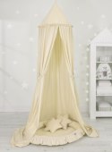 Efektowny wiszący baldachim, piękny element pokoju dziecięcego. Może służyć jako niepowtarzalna dekoracja łóżeczka dziecięcego. Jak również może stworzyć przytulne miejsce do zabawy. Zawieszony nad łóżeczkiem dziecięcym osłoni przed nadmiarem światła oraz wytłumi hałasy, tworząc wewnątrz łóżeczka przytulne i bezpieczne miejsce do odpoczynku. Baldachim można łatwo zamontować do sufitu. Jest długi ok. 260cm, dzięki czemu swobodnie ułoży się na ziemi, tworząc doskonałą kryjówkę i miejsce do zabawy.