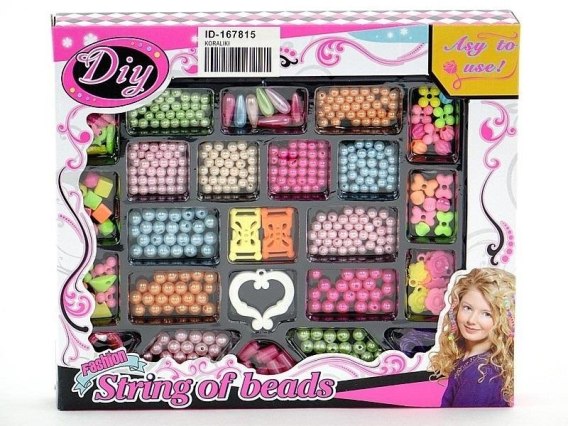 Zestaw koralików i aplikacji do robienia biżuterii; 27x23,5x4cm