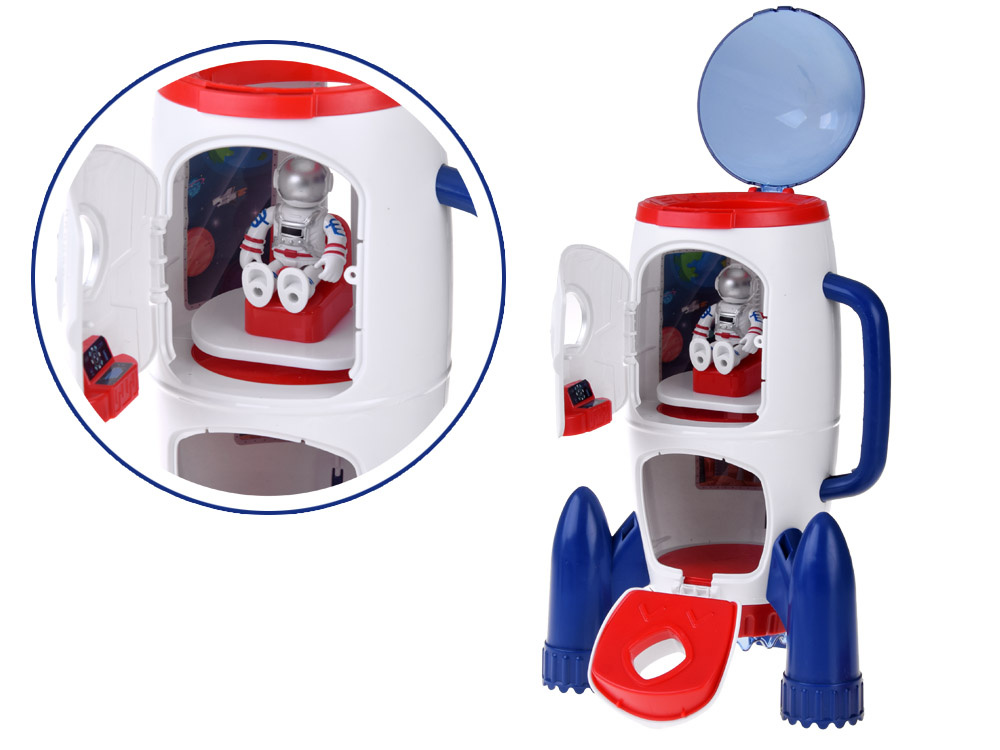 W tylnej części rakiety znajduje się pokrętło za pomocą którego nasz maluch będzie mógł przetransportować astronautę do kokpitu obserwacyjnego.