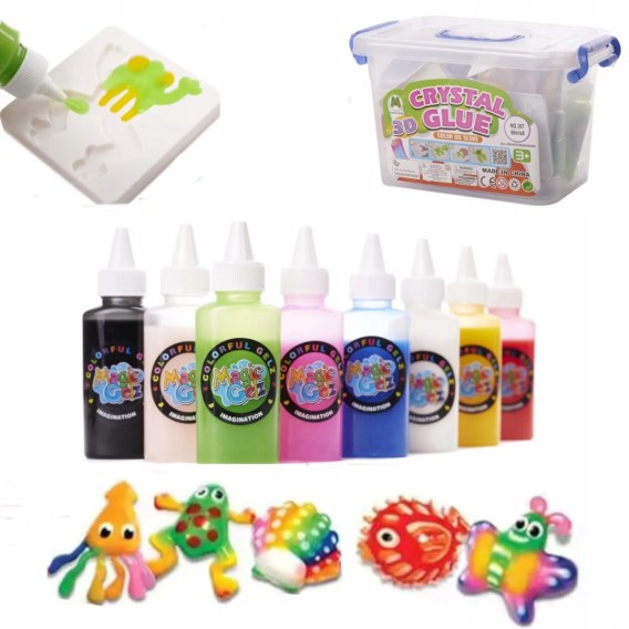 Dodatkowo korzystanie z foremek czy żelowych klejów wymaga precyzyjnych ruchów palców i rąk, wspomagając rozwój umiejętności motorycznych i manualnych. Zabawa w kreatywna to często wspólna aktywność z rodziną lub innymi dziećmi wpływa więc pozytywnie na wzmacnianie umiejętności społecznych i relacji międzyludzkich. Przyjemnie spędzony czas na tworzeniu żelowych figurek pomaga w wyciszeniu się, zrelaksowaniu i oderwaniu do trosk.