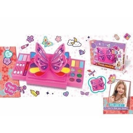 Zestaw piękności, kuferek motylek. Jest to zestaw do makijażu. Zamykany kuferek z efektownym motylem zawiera cienie do powiek, szminkę i inne potrzebne do makijażu akcesoria.