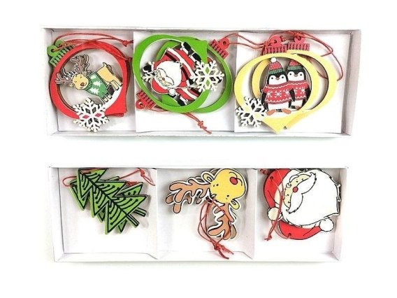 Zestaw zawieszek świątecznych drewniane 25 x 8,5 cm. MIX